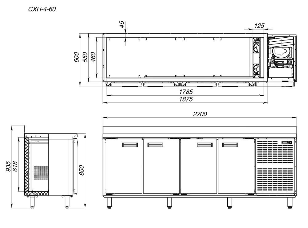 Холодильный стол АРКТО СХС-4-60 длиной 2200 мм и объемом 548 литров предназначен для охлаждения и кратковременного хранения продуктов, а также обработки ингредиентов блюд на рабочей поверхности. Модель выполнена из нержавеющей стали. Оснащена бортом. Имеет встроенный холодильный агрегат и 4 распашные металлические двери. Диапазон рабочих температур -2...+7°C. Динамическая система равномерно охлаждает продукты во всем полезном объеме холодильный стола. Глубина выкладки 600 мм. Способ оттаивания - естественными теплопритоками. Холодильный стол подходит для работы при температуре окружающей среды от +12 до +35 °С и относительной влажности до 80 %.